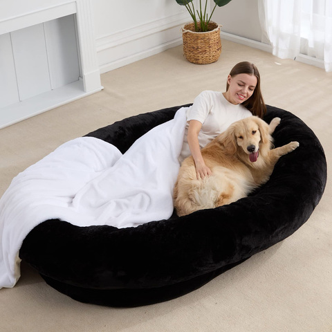 मानव आकार पालतू कुत्ते बिस्तर ऑर्थोपेडिक नकली फर लंबे प्लग मेमोरी फोम बड़े लक्जरी xl वयस्क अंडाकार पुरुषों के लिए विशाल मानव कुत्ते बिस्तर